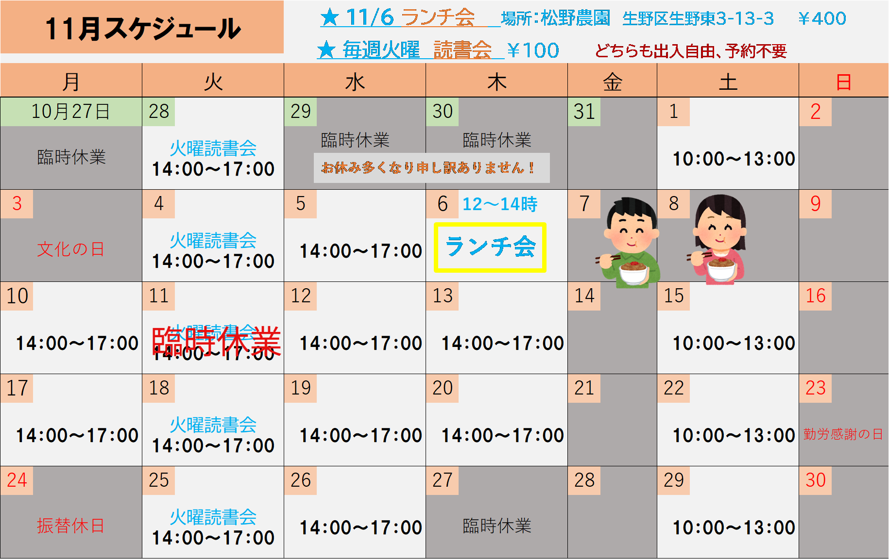 【 お詫び 】11月11日(火)休業します。直前のお知らせご迷惑をおかけします。(2025/11/8) |
